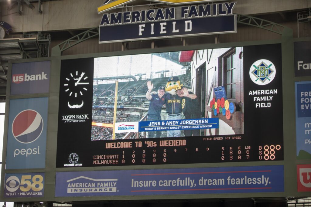 Their objectives with the deal were to increase brand perception, consideration and conversion, and efficiently drive business results. To help them achieve their objectives, we developed a multi-pronged activation strategy with several touch points that has evolved over the last two years post-pandemic. These include an interactive, no-touch concourse activation offering consumers a chance to watch an inning from Bernie’s Chalet – their most iconic marquee asset – alongside a community focused content series, promotional sweepstakes leveraging Brand Ambassador Christian Yelich, and a tailgate inspired footprint with a photo op located on the outside plaza. New in 2023, we expanded beyond Milwaukee and were a strategic partner in activating for the first time at American Family Fields of Phoenix with a signature “AmFam House” footprint, engaging with fans throughout the entirety of Spring Training.